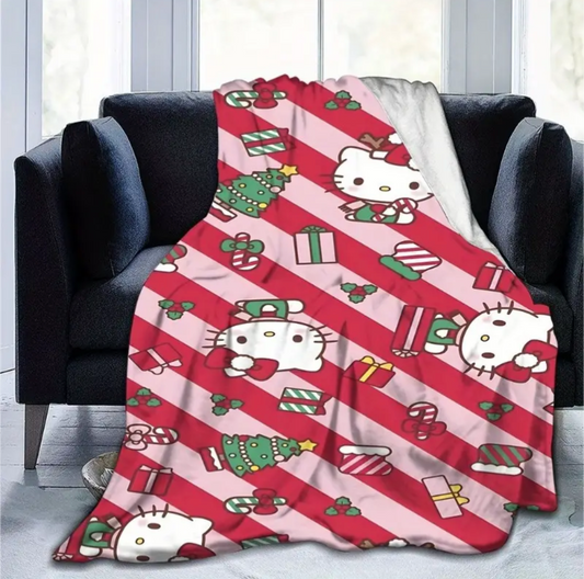 Hello Kitty Red & Pink Candy Cane Christmas Fleece Blanket (150cm x 100cm)